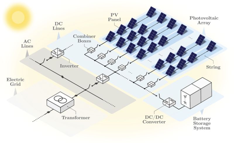 نیروگاه خورشیدی متصل به شبکه، انرژی تولیدی پنلها را مستقیماً به مصرفکننده یا شبکه برق شهری تزریق میکند و امکان درآمدزایی از فروش برق مازاد را فراهم میکند. این سیستم بدون باتری، کمهزینه و مناسب برای مناطق با دسترسی به شبکه است.