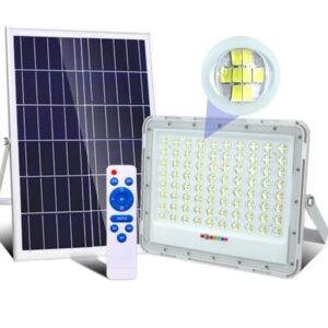 - اين محصول باقابلیت نوردهى بالا با نصب آسان بدون نياز به كابل كشى و بدون نياز به تابلو برق بدون نياز به كليد برق داراى پنل خورشيدى جدا و داراى كابل مخصوص ضد آب جهت اتصال پنل به پرژكتور به طول ٥ متر داراى مقاومت عايقى بالا در مقابل آب و گرد و غبار (IP67) و سرما و گرما (50+ تا30-) درجه، داراى پنل خورشيدى و باترى ليتيوم مدت زمان شارژ باترى توسط نور خورشيد و پنل خورشيدى ٤ ساعت داراى 308 عدد چيپ led-smd با نوردهى بالا داراى ريموت كنترل با برد 10-8 متر جهت روشن و خاموش كردن و تنظيم مقدار نور مورد نياز، مدت زمان نوردهى پروژكتور در صورت تنظيم بر روى حالت نور كمتر 12 ساعت و تنظيم روى حالت نور زياد وكامل 8 ساعت مي باشد منطقه تحت تابش اين پروژكتور 500 وات 150 متر مربع ميباشد. كاربرد : مناسب براى محوطه گاراژ و كارگاه، حياط ساختمان، باغ و باغچه، بيلبورد يا تابلو تبليغاتى می باشد. قابليت ديگر اين مدل پروژكتور اين مي باشد كه به دليل داشتن پنل خورشيدى جدا و كابل رابط ٥ مترى ميتوان پنل را بيرون و چراغ را هم در بيرون و هم درداخل سالن و فضاى داخلى ساختمان يا كارگاه استفاده كرد .